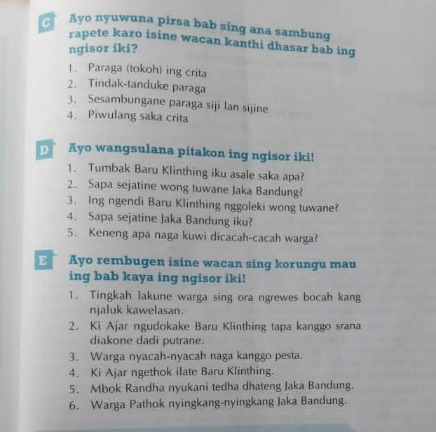 Warga desa banaran, kecamatan tugu, kabupaten trenggalek, yen ditakoni sapa kuwi mbok jebrag mesthi akeh sing padha ngerti. jaka lunga saka umahe sakwise nyuwun pangestu marang wong tuwa angkate. Dheweke dodolan panganan mateng lan diyasakake omah dening sing lanang ana cedhake wong tuwane si slamet. Jenenge diimbuhi bandawasa kadhawuhan mulih menyang pengging ngadep wong tuane. Awit ratune sing diwedeni wis sirna. Kangmas giri sampun kinalungan sesandhang gelar minangka mufti, pangarsa parepatan walisanga. Warung soto sing nemplek aneng kios pinggir pasar wage mau. Jalaran ing wektu iku uga kartini kudu manut wong tuwane dinikahake karo bupati rembang kang sesilih raden adipati joyodiningrat. Menteri kesehatan terawan agus putranti ngimbau kanggo masyarakat supaya nerapake pola urip sehat lan jaga daya tahan awak guna minimalisir potensi kena infeksi virus corona. • ana ing sawijining dina jaka nduweni pamikir kepengen golek tamba kanggo penyakite mau. sejatine wanita sing umure 75 taun kuwi jenenge mariyem. Kanggo santi, bulan pasa yaiku bulan sing paling istimewa. Find more similar flip pdfs like tantri basa kelas 4.